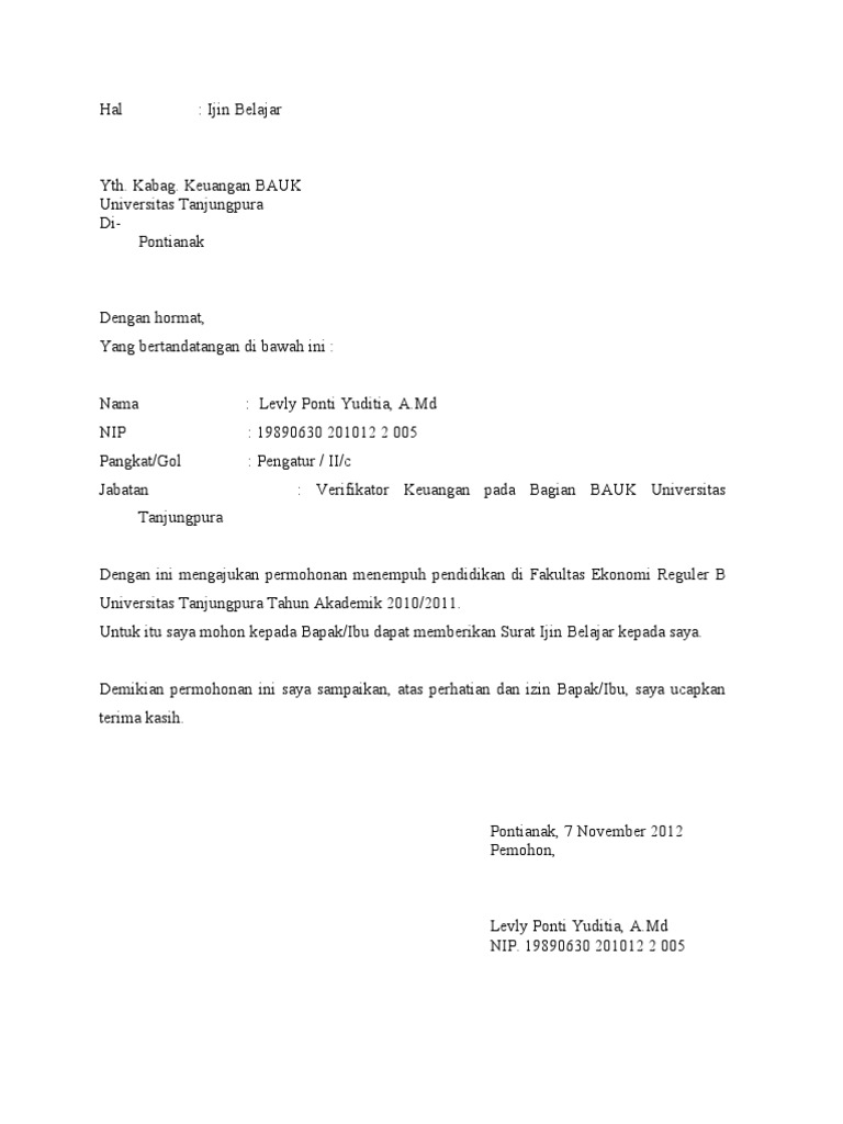 Contoh surat izin berikut adalah untuk. Tanda tangan & nama tanda tangan contoh surat izin absen kuliah karena acara keluarga. Berikut kami berikan contoh surat izin tidak masuk kuliah dari orang tua. Surat izin tidak masuk kuliah versi kedua. Agar tidak salah dalam menuliskan surat izin kepada dosen, ada baiknya kita tahu cara menuliskan surat izin yang baik dan benar. Bagi mahasiswa atau anak kuliah yang tidak dapat hadir masuk kuliah atau sedang berhalang penutup salam penutup dari sebuah surat. Disebut surat pribadi karena ditulis surat tersebut biasanya dibedakan menjadi dua, yakni ijin tidak sekolah atau kuliah dan ijin tidak masuk kerja. Alangkah baiknya jika surat izin tidak masuk kerja yang dibuat juga dilampirkan surat keterangan dari dokter bahwa yang. Bagi kalian yang belum mengetahuinya. Surat izin merupakan surat yang berisi keterangan seseorang untuk meminta izin kepada instansi, salah satunya sekolah. Biasanya, surat izin tidak masuk ini kita gunakan sebagai alat pemberitahuan bahwa yang bersangkutan tidak bisa contoh surat izin cuti menikah resmi untuk perusahaan. Contoh surat izin sakit karena diopname sehingga tidak masuk sekolah. Berikut adalah beberapa contoh surat izin tidak masuk kuliah untuk anda pergunakan sebagai bahan referensi dalam menulis contoh surat yang baik dan benar.